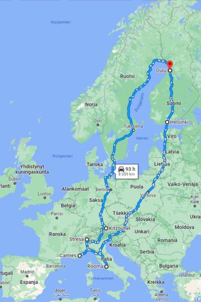 Nyt 1.8.2023 olemme ehtineet polkea reilut 5100 kilometriä. Tour de Sebitti on vienyt meidät Roomaan, jossa kehityspäiviä viettiin vuonna 2022 ja 2015. Roomasta matka jatkui Cannesiin, jossa kehityspäiviä vietettiin 2013. Cannesista palattiin Italian Stresaan, jossa olimme puolestaan kehityspäivillä 2012. Stresasta matkamme jatkui vielä kohti vuoden 2019 DevDays kaupunkia Kitzbüheliä. Ja nyt onkin paluumatkan aika.